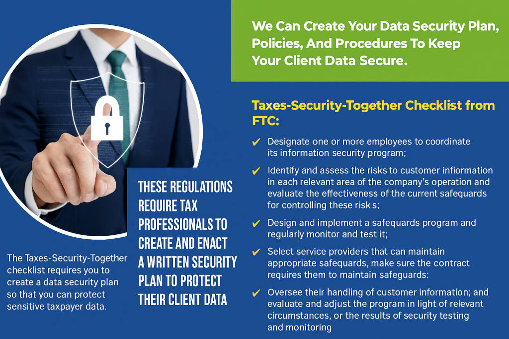 These regulations require tax professionals to create and enact a written security plan to protect their client data.